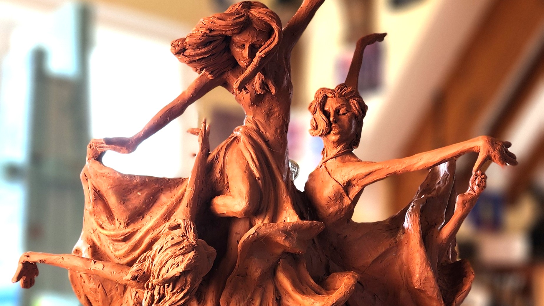 This short phrase captures the resilience and unlikely bonds that emerge from challenging circumstances. My five figures dancing with abandon on a narrow wooden catwalk represent each of the five wits from Shakespeare’s writings: Common Sense, Imagination, Instinct, Fantasy, and Memory.