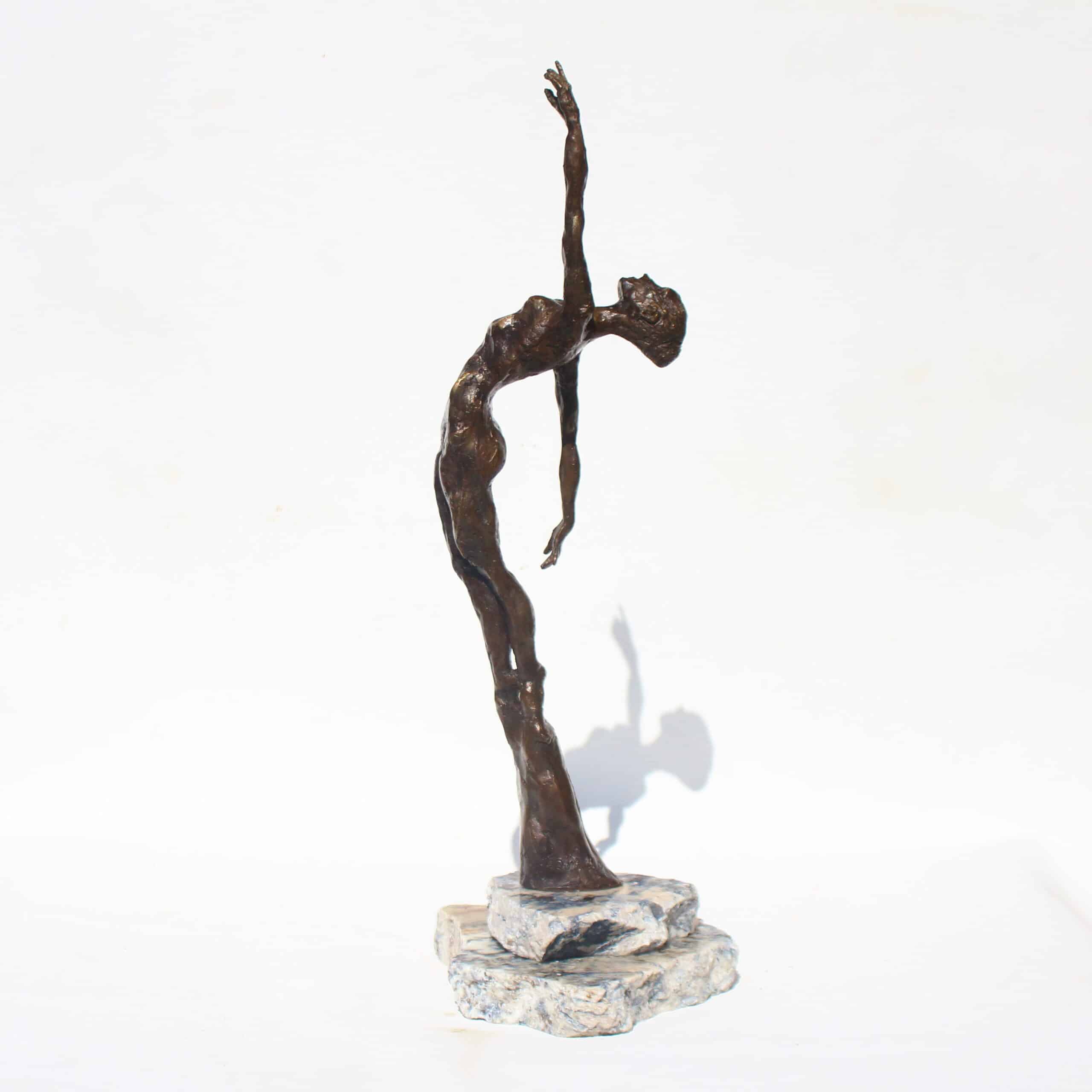 A play on words, The Archer explores the theme of nerve and backbone both physically and metaphorically. “Untried fervor fills her quiver, Untamed vigor favors her bow” speaks to the ability possessed by the archer as she sets her sights and resolve. I convey this through the contour of the arms and forward lean of the figure.