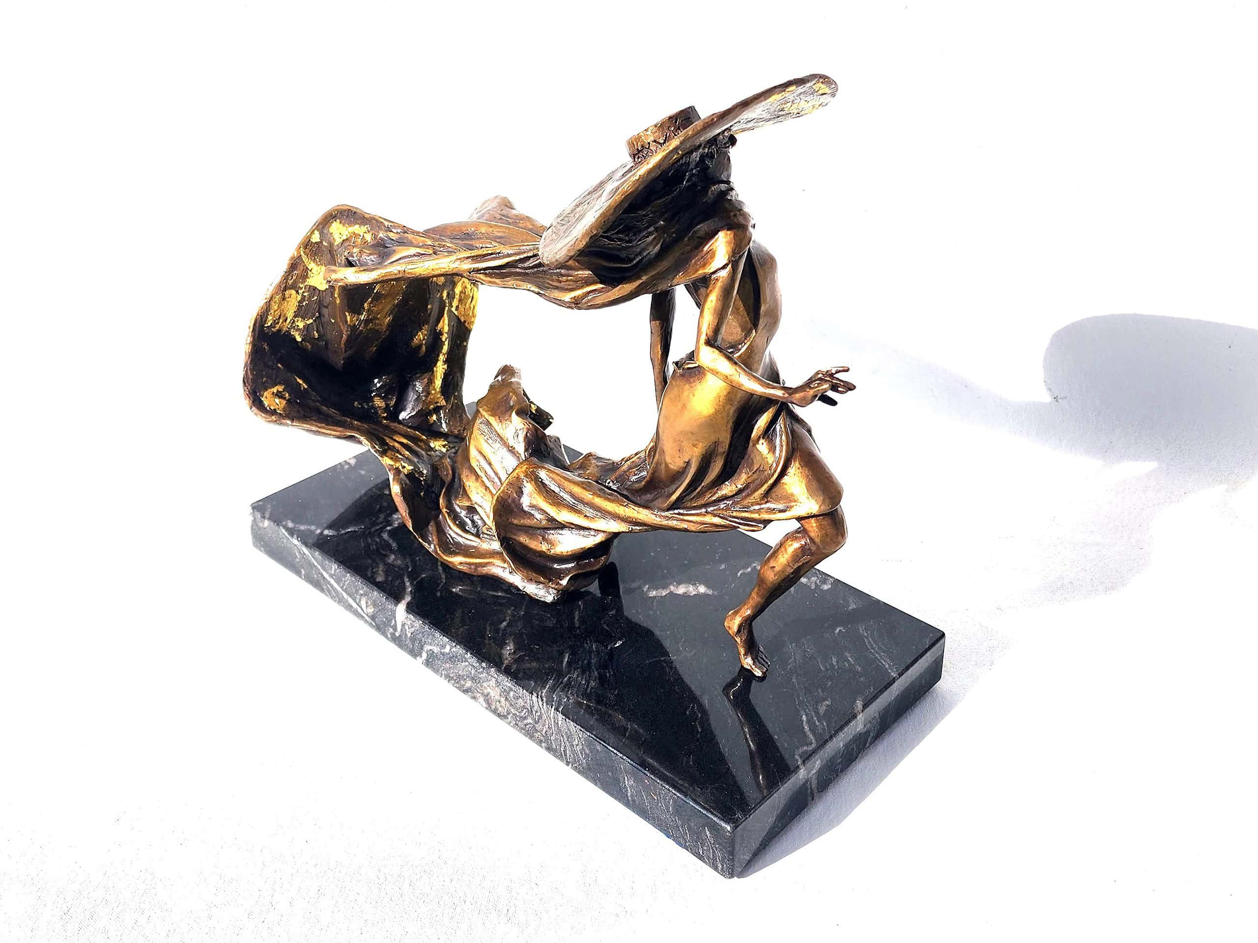 ECLIPSE was created in honor of the two total eclipses that I saw on a river bank in Missouri 2017 and off a dirt road Ohio 2024. The figure represents the brief union of the moon & sun with a cape of gold leafed stars. The curved pattern on the hat is based off the celestial path of totality for the two eclipses. There is even a hidden roman numeral MMXXIV and MMXVII in the hat band.