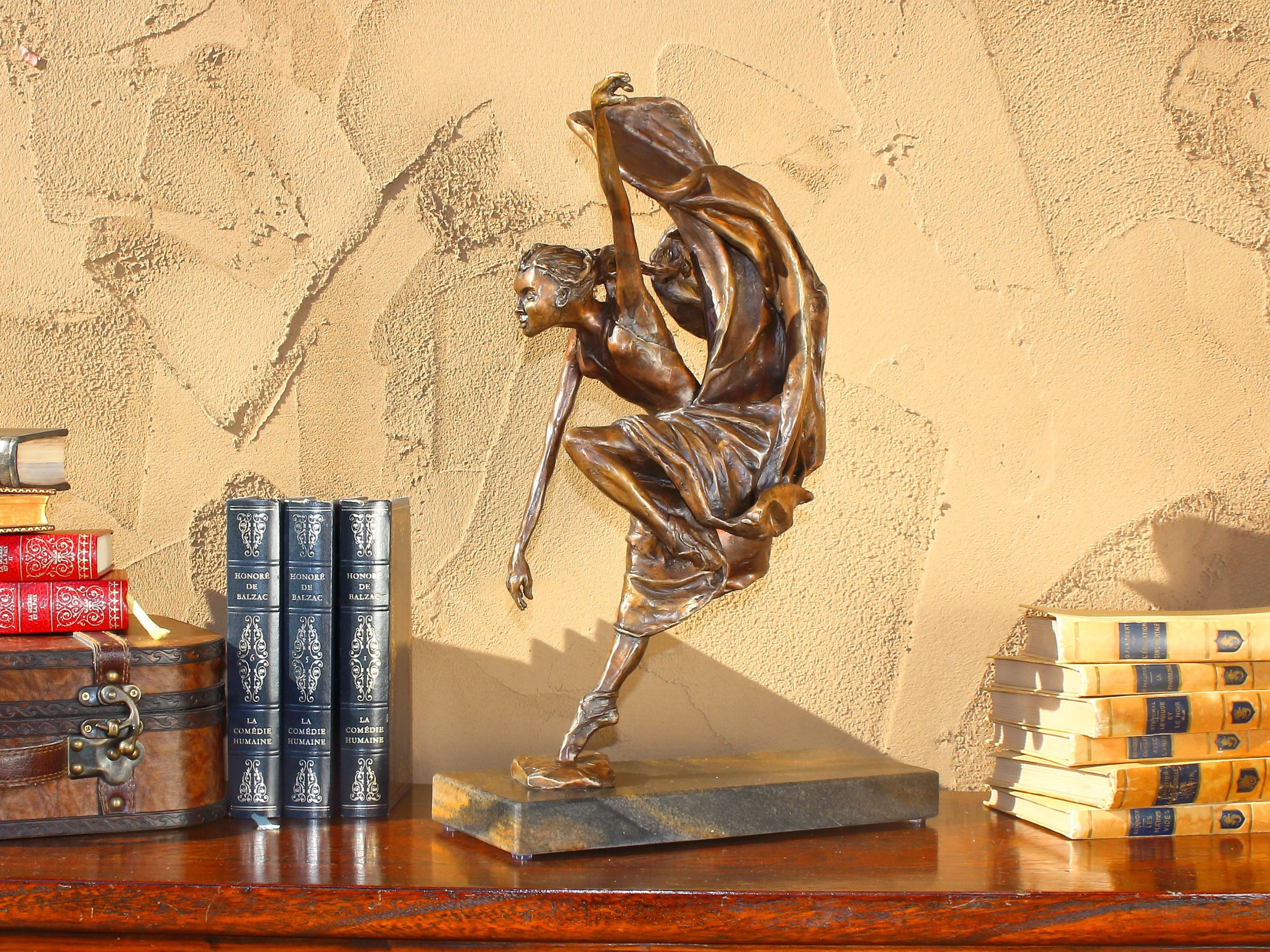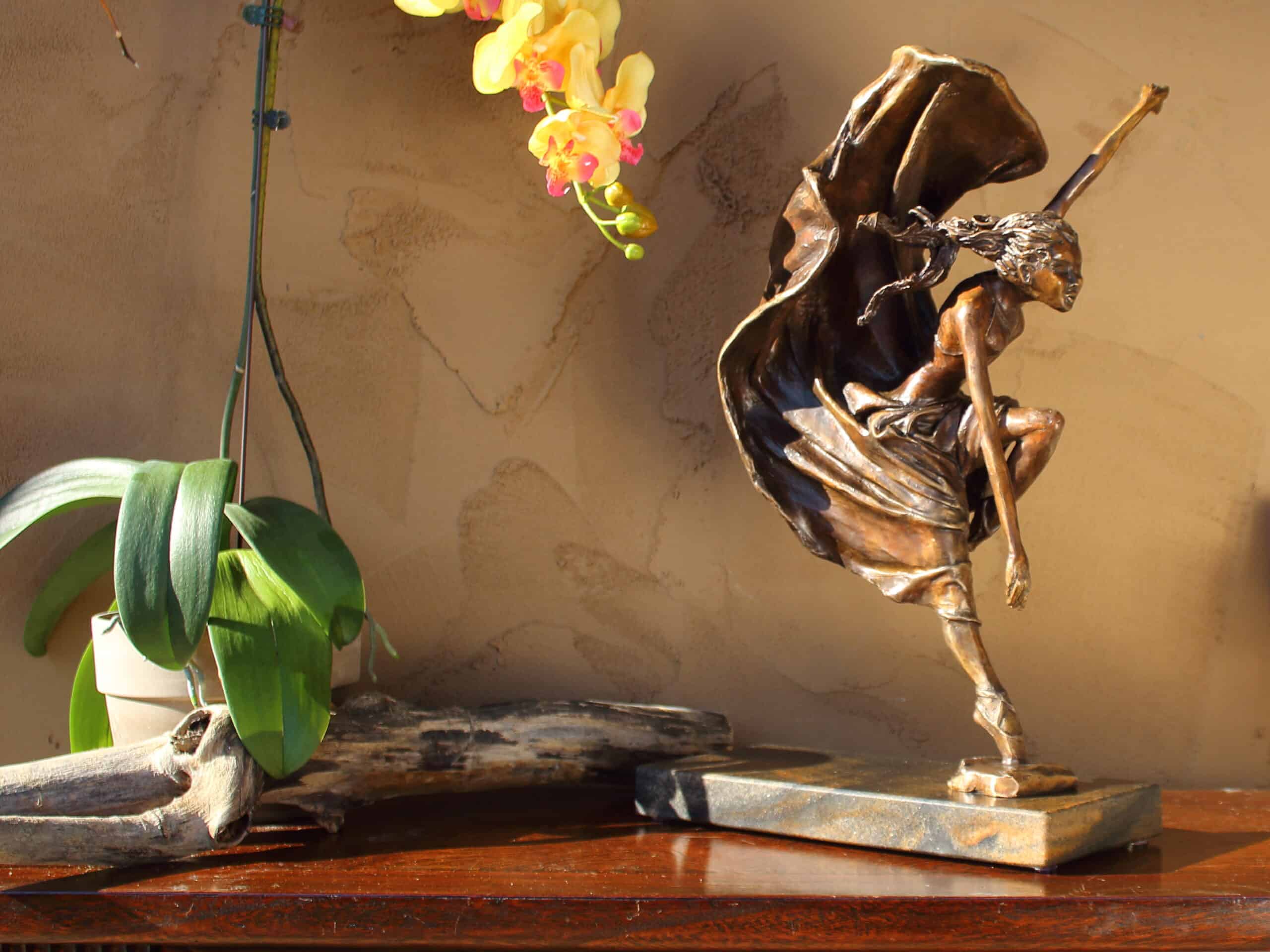 Glorious embodies the moment a dancer takes the stage like a storm advancing from warm waters. Irrepressibly alive, a category five, she is draped in brio and hurricane of self-rule. The off center of gravity, flow of fabric, and hair are counterbalanced by the undeniable forward facing momentum.
