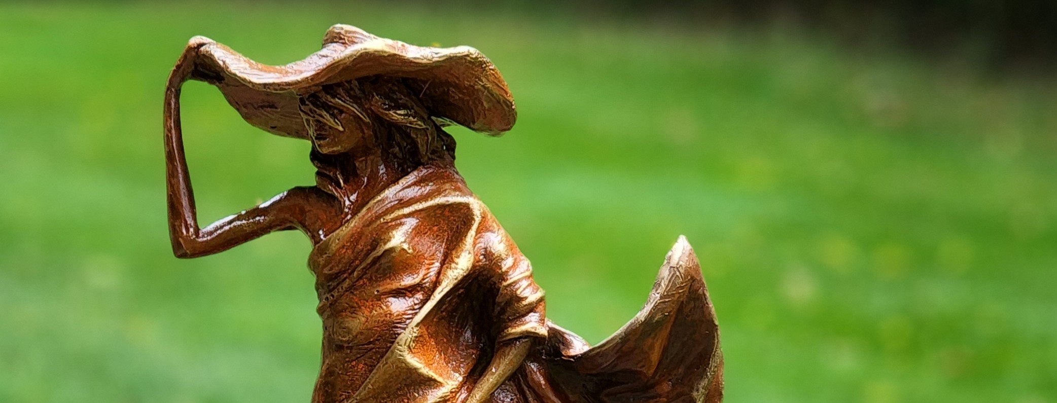 I created a very orange layered patina for the Sea Sisters. The orange patina serves to raise the intensity and heat of the sculpture.